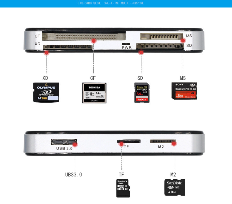 USB 3.0 Memory Card Reader Adapter 5GBPS Fit For CF/TF/SD/Micro SD/XD/M2/MS Card